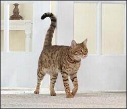 尾巴姿態:舉高。 當愛貓在其領地裡四處走動,將尾巴高舉在空中時,表示牠感到自信和滿足。直直高聳的尾巴,表示快樂,而且願意親近。再仔細觀察豎直尾巴的尖端。如果有細微抖動,那表示牠特別開心。